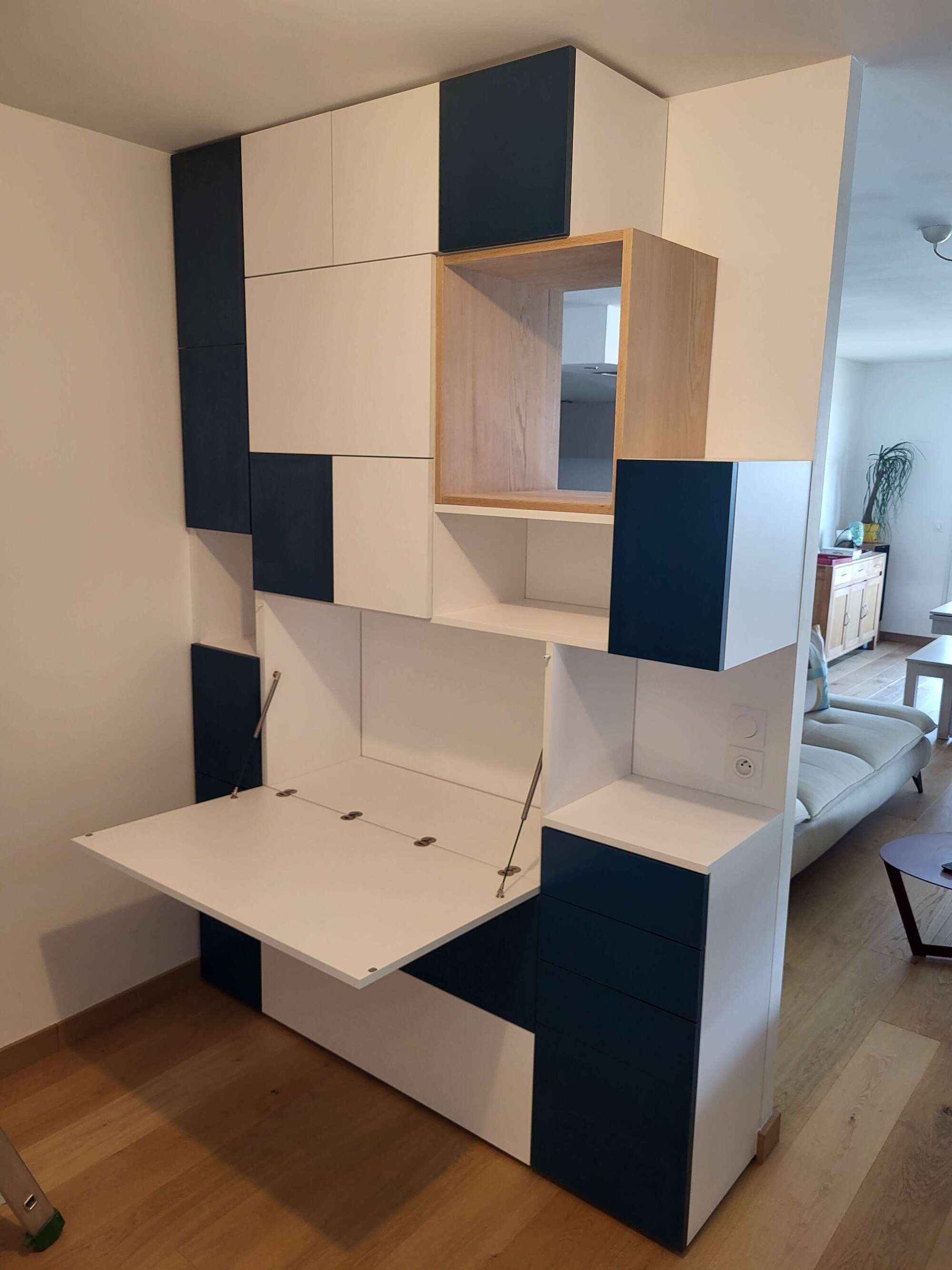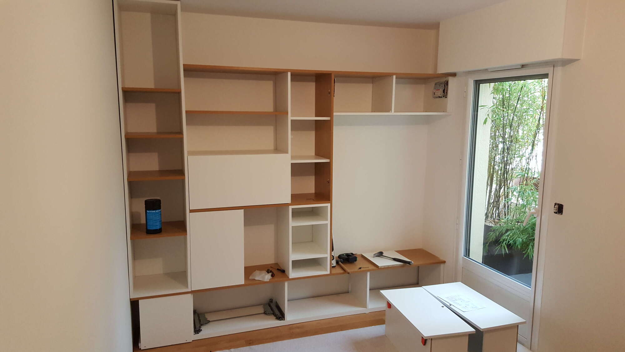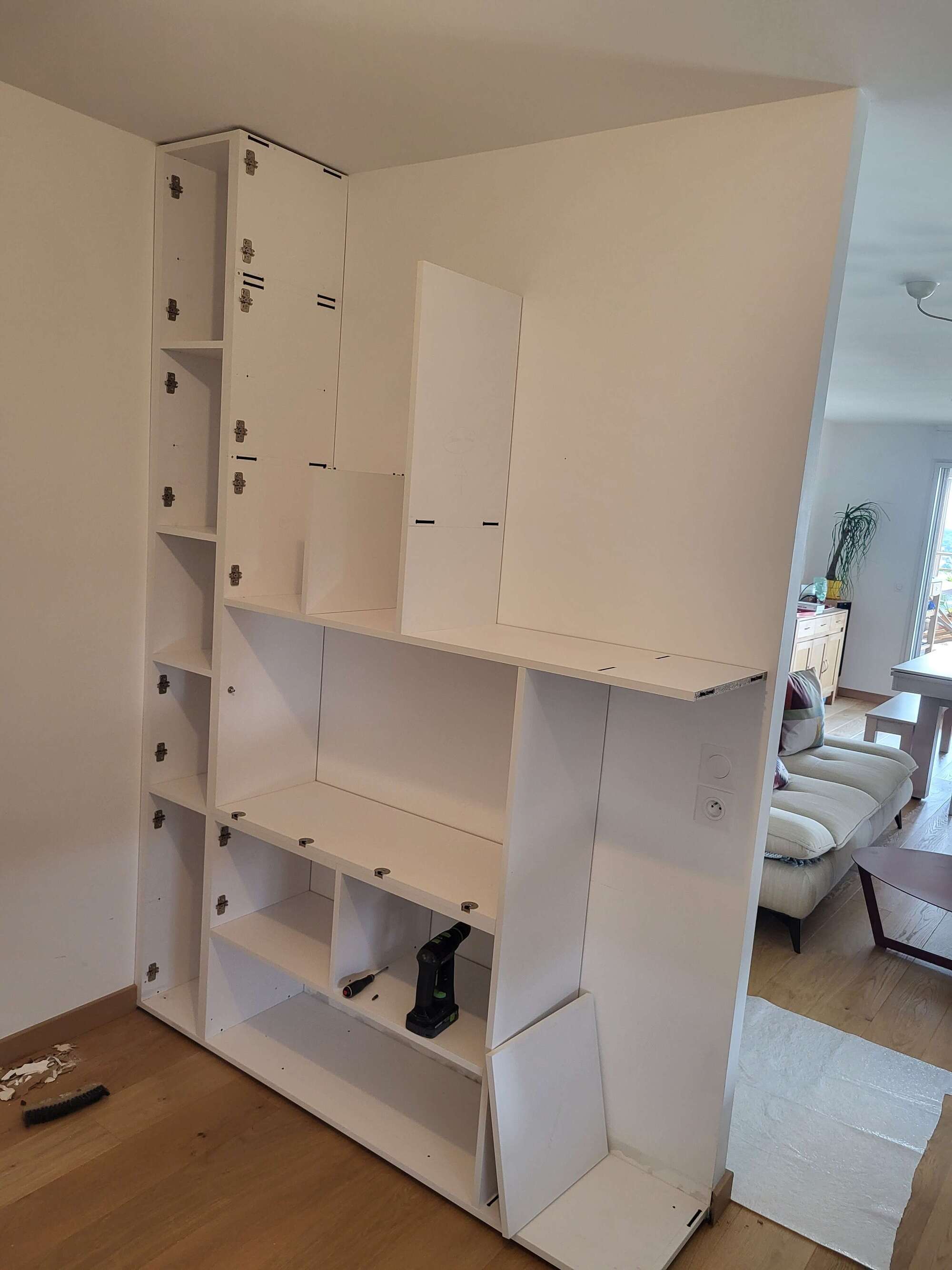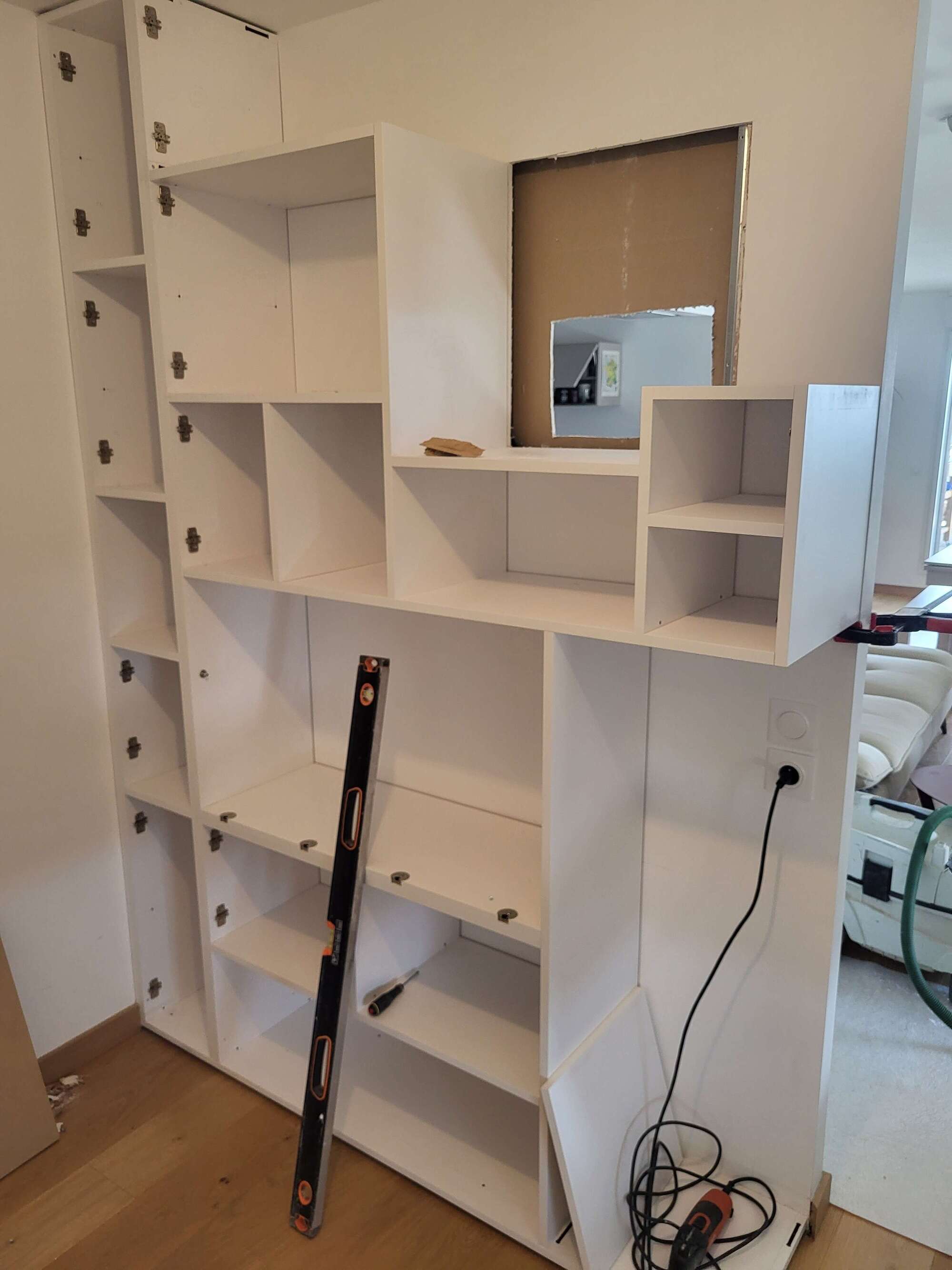 fabrication et pose d'un meuble de rangement pour une cuisine en melaminé
