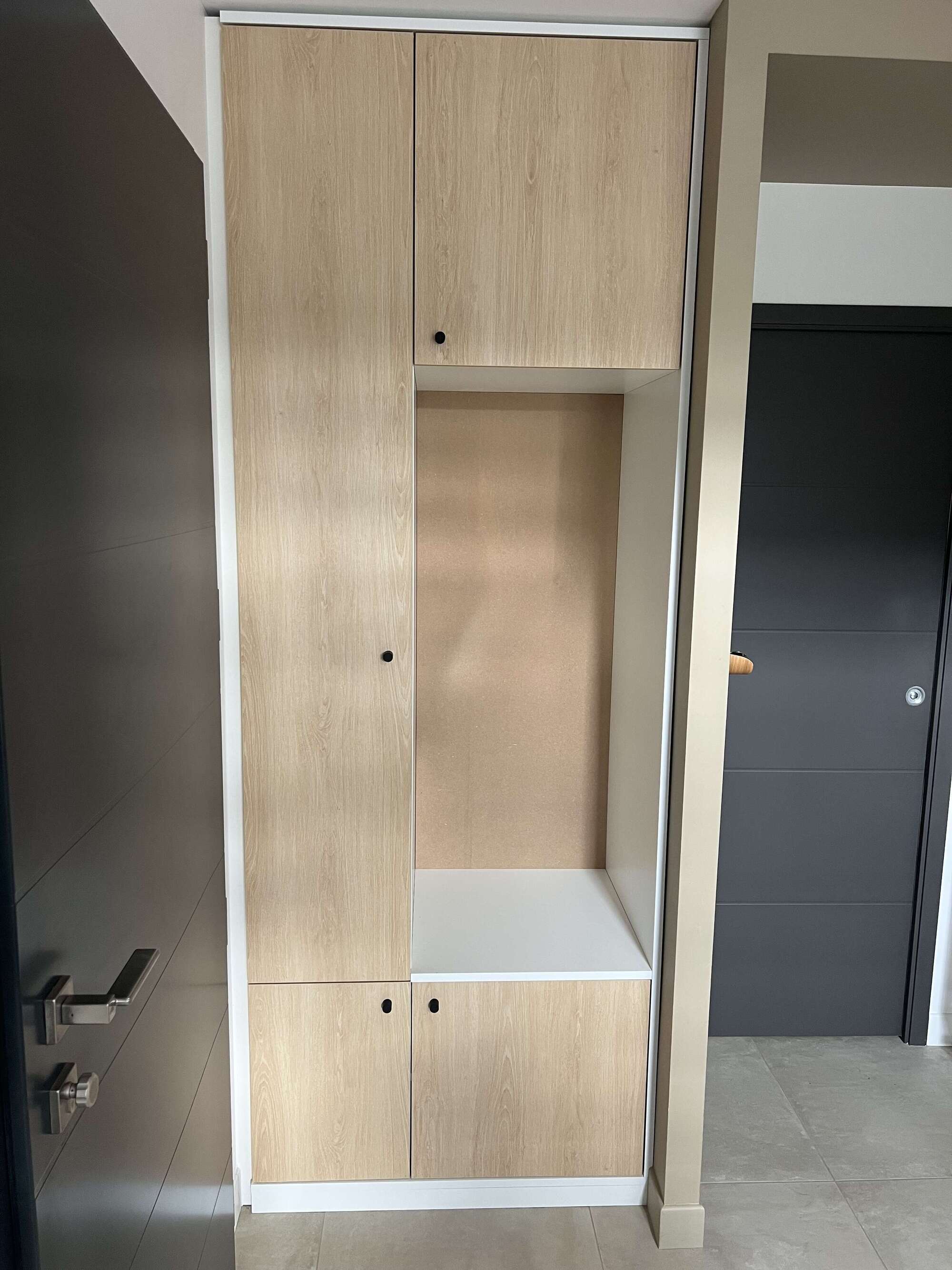 fabrication et pose d'un meuble rangement dans une entrée